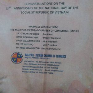 73rd Anniversary National Day of Vietnam held on 27 Aug 2018 (7pm-9pm) at JW Marriot – Congratulatory Bouquet
